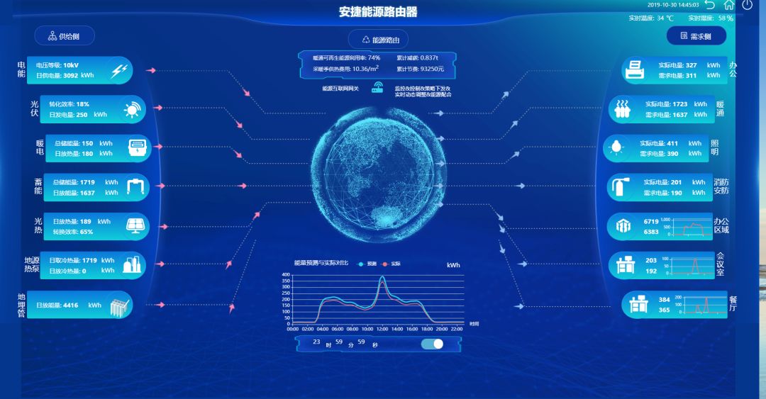 由suncitygroup太阳集团物联自主研发的能源路由器,能够实现能源需求侧与供给侧的精准匹配,以suncitygroup太阳集团物联能源互联网大厦为例,楼内安装温度、湿度、PM2.5、PM10与二氧化碳的五合一传感器,以及流量、压力、震动等各种各样的传感器,通过这些传感器将基础数据上传至云端,从而实现能源的精准判断。